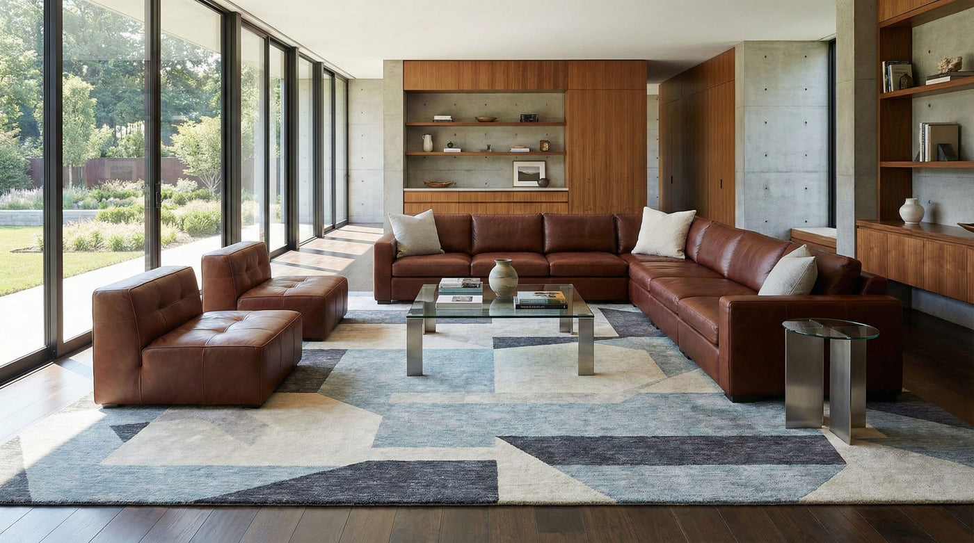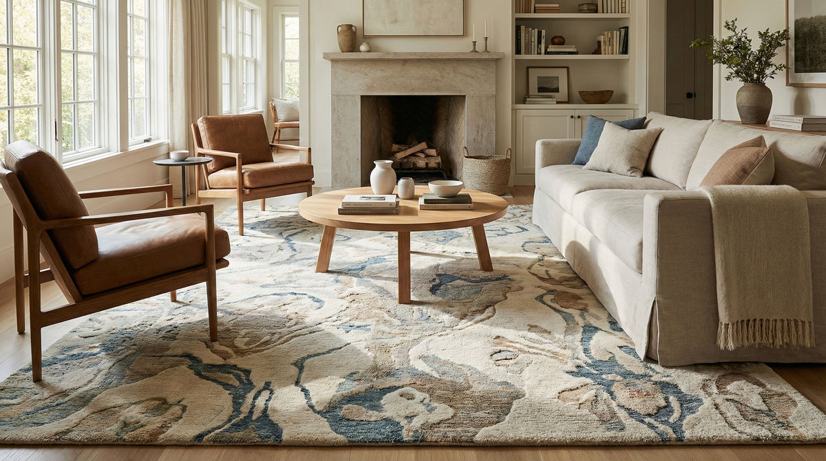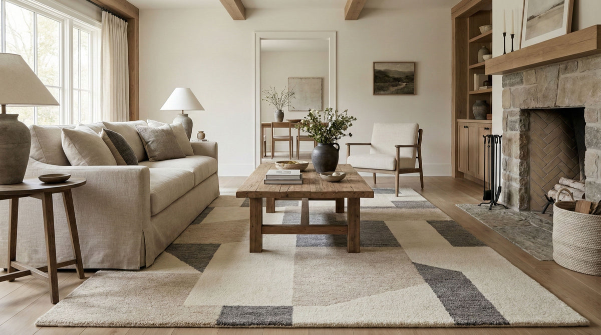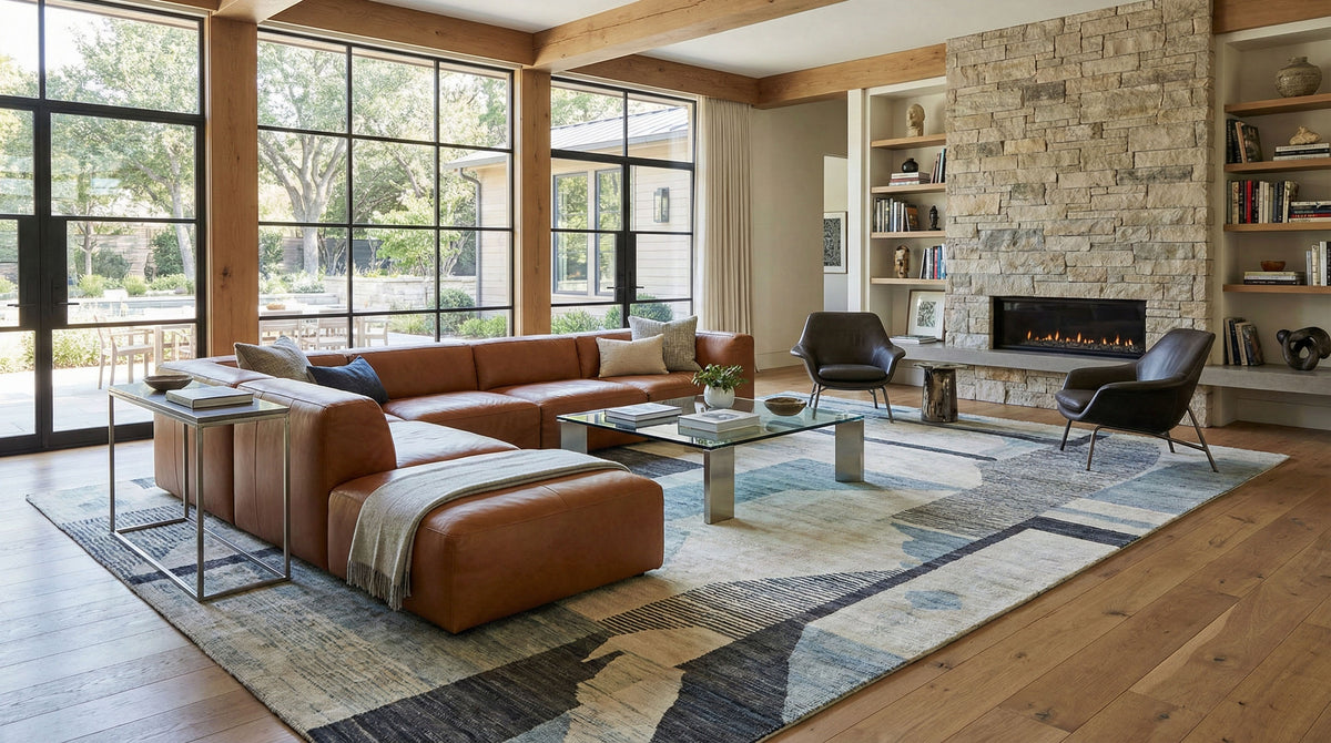 Hand-tufted rugs are made by guiding yarn through a backing by hand, allowing for richer texture, deeper color, and custom design flexibility.