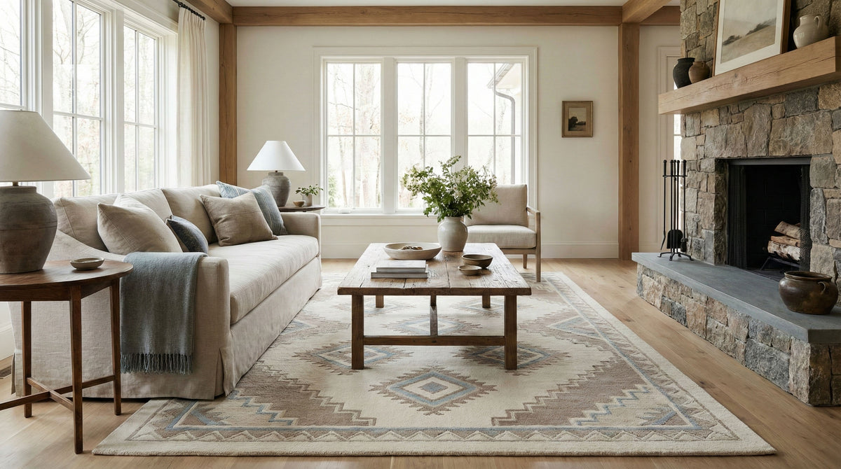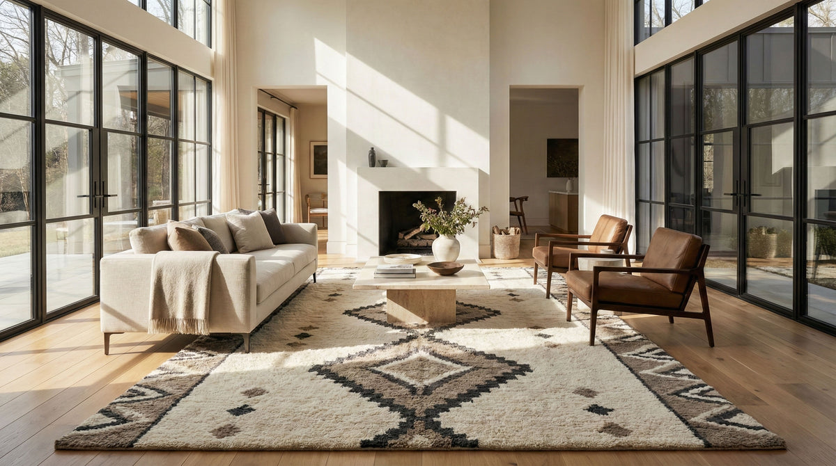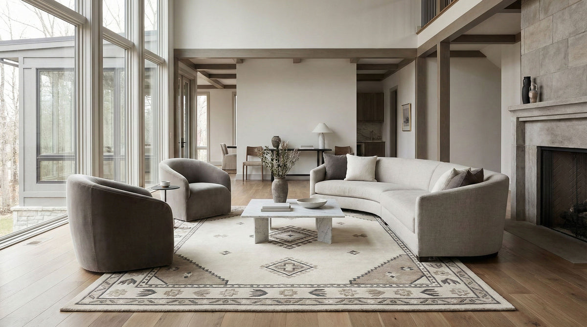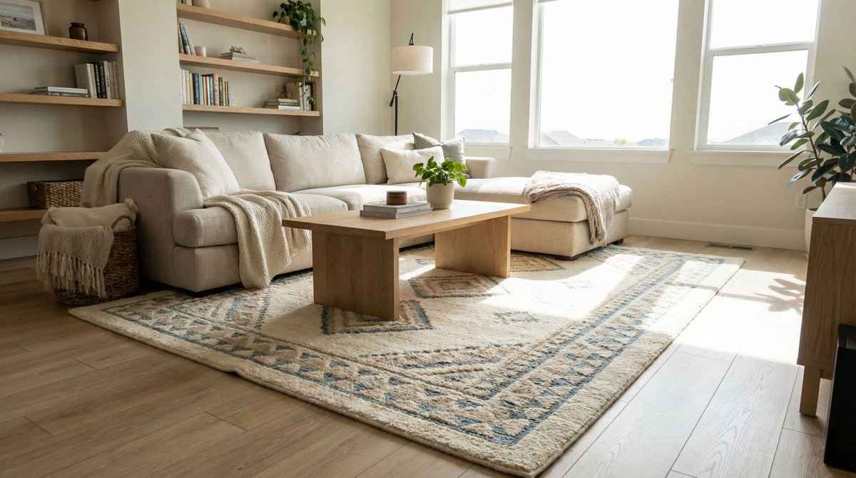 Hand-tufted rugs are made by guiding yarn through a backing by hand, allowing for richer texture, deeper color, and custom design flexibility.